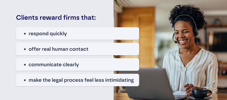 Clients no longer want to wait for information. They want steady, proactive updates from the moment they first contact a firm. Clio reports that communication gaps are one of the top reasons clients feel dissatisfied or anxious during a legal matter: